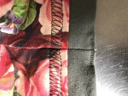 De mouwen zet ik in de armsgaten en ik sluit de zijnaden. Het mouwboordje stik ik op de naad even extra door. De zoom stik ik met hetzelfde stiksel als de boordjes.