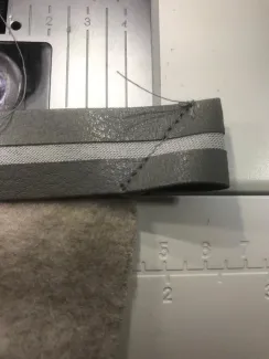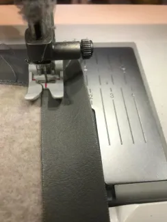 Met een rand biaisband maak ik het wat stoerder. Dit stik ik met mijn teflonvoetje rondom langs de deken. Ik leg het gewoon op de goede kant en stik het zichtbaar vast. Net voor de hoek stop ik met naaien, dan vouw ik het band terug en stik er een hoek in. Die knip ik kort af en dan naai ik het band de hoek om. Zo naai ik alle vier de hoeken.