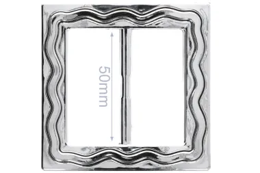 De siergesp is gemaakt van kunststof en zilverkleurig.