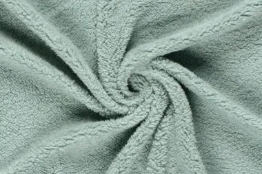 Heerlijk zachte sherpa fleece stof in de kleur ijsblauw. Deze stof heeft een breedte van 150 cm en een gewicht van 200 g/m2.