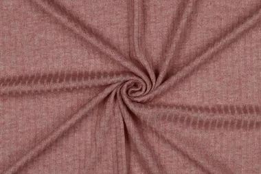 Gebreide stof met lurex in de kleur roze, lurex goudkleurig. Deze stof heeft een breedte van 1.55 meter en weegt 200 gr/m2. Liggend drogen!