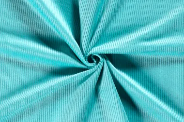 Katoenen corduroy 4.5w stof in de kleur turquoise. Deze stof heeft een breedte van 140 cm en een gewicht van 290 g/m2.