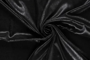 Satijn stof foliedruk in de kleur zwart. Deze stof heeft een breedte van 145 cm en een gewicht van 105 g/m2.