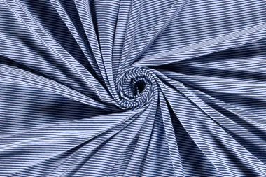 Katoenen tricot met strepen in de kleuren blauw en wit, garengeverfd. Deze stof heeft een breedte van 150 cm en een gewicht van 200 g/m2.