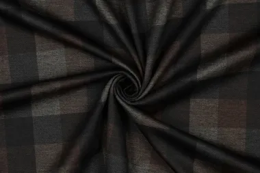 Punta di Vicenza met ruiten in de kleur bruin multi. Deze stof heeft een breedte van 145 cm en een gewicht van 315 g/m2. Liggend drogen.